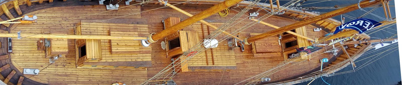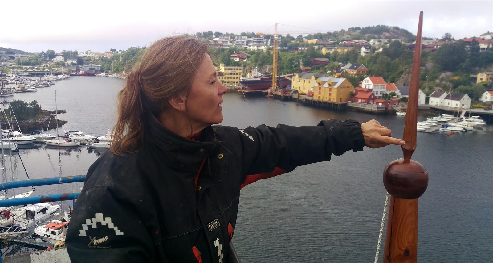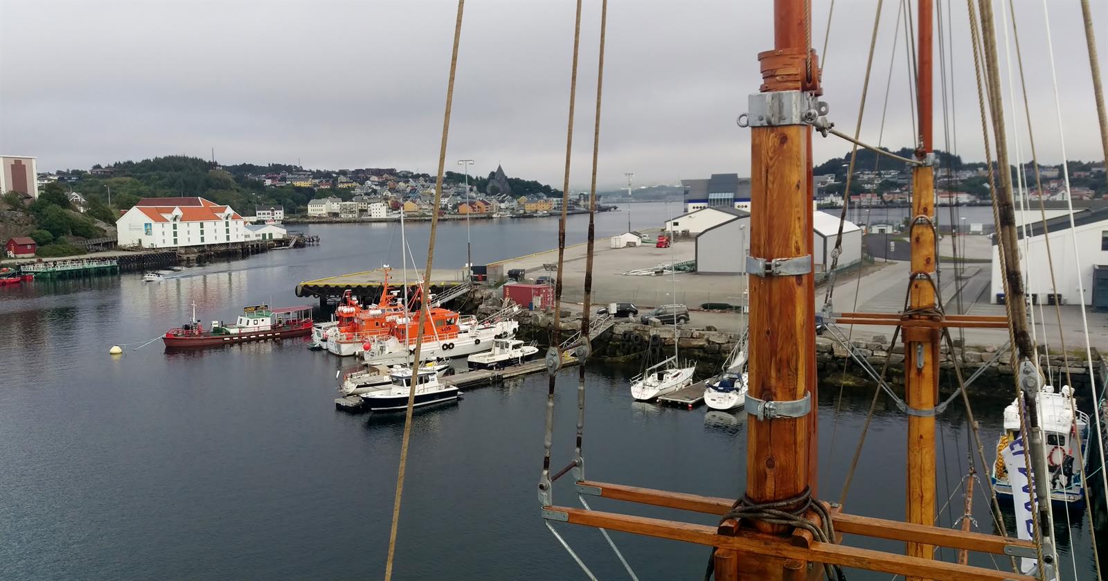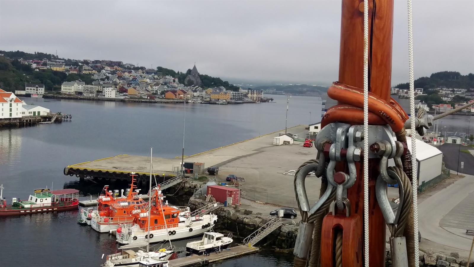 Mange av arbeidsoperasjonene har vært tunge og kronglete men takket være liften har alt gått som smurt. Kan ikke akkurat klage på utsikten oppe i riggen heller!